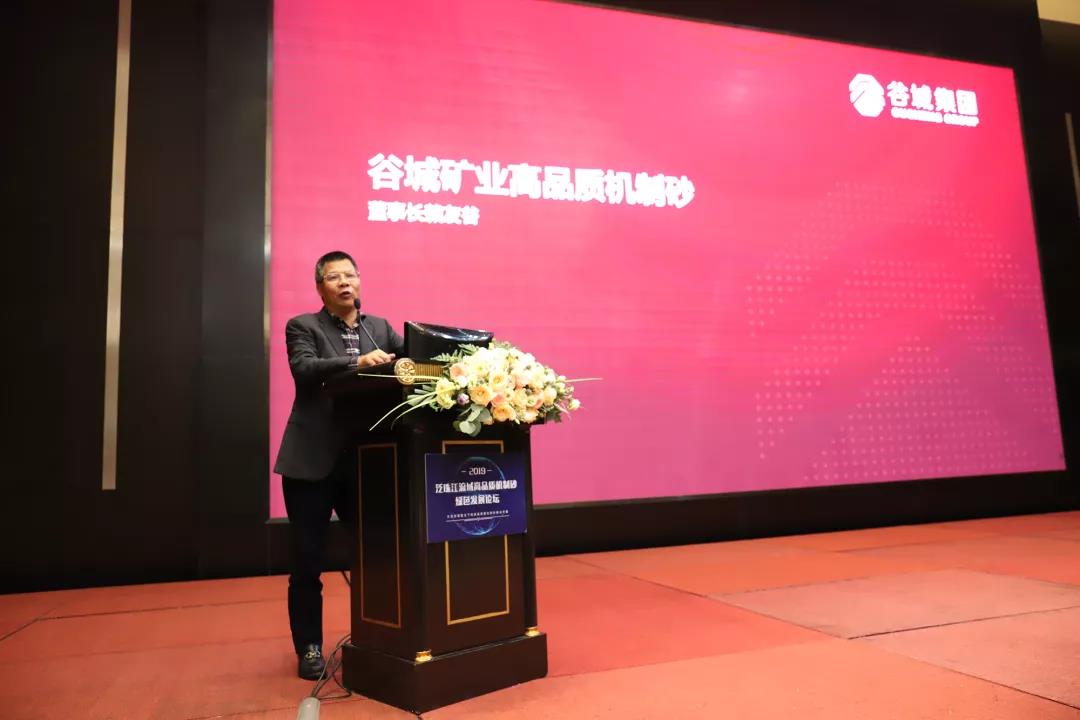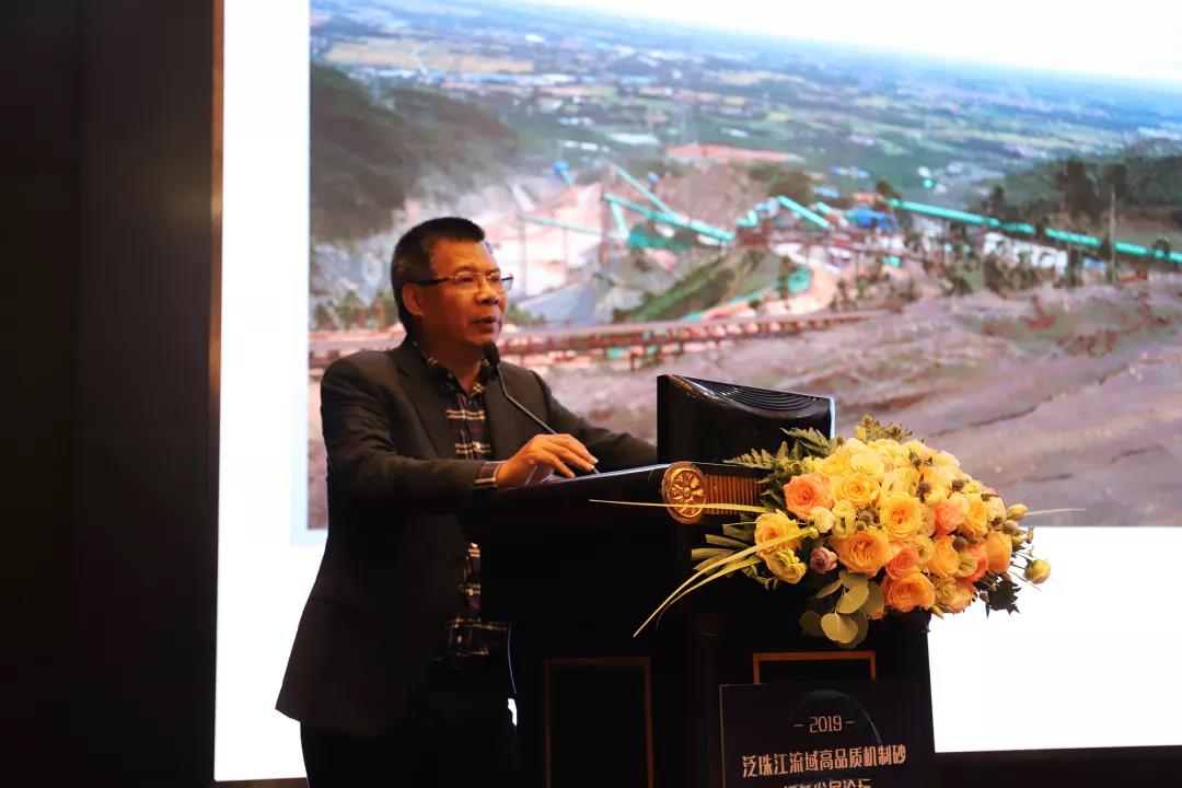 作為機制砂行業領軍人物、砂石研究專家谷城集團董事長賴友谷在論壇上致辭,以“高品質機制砂現狀與發展”為題分享了機制砂的心得看法。