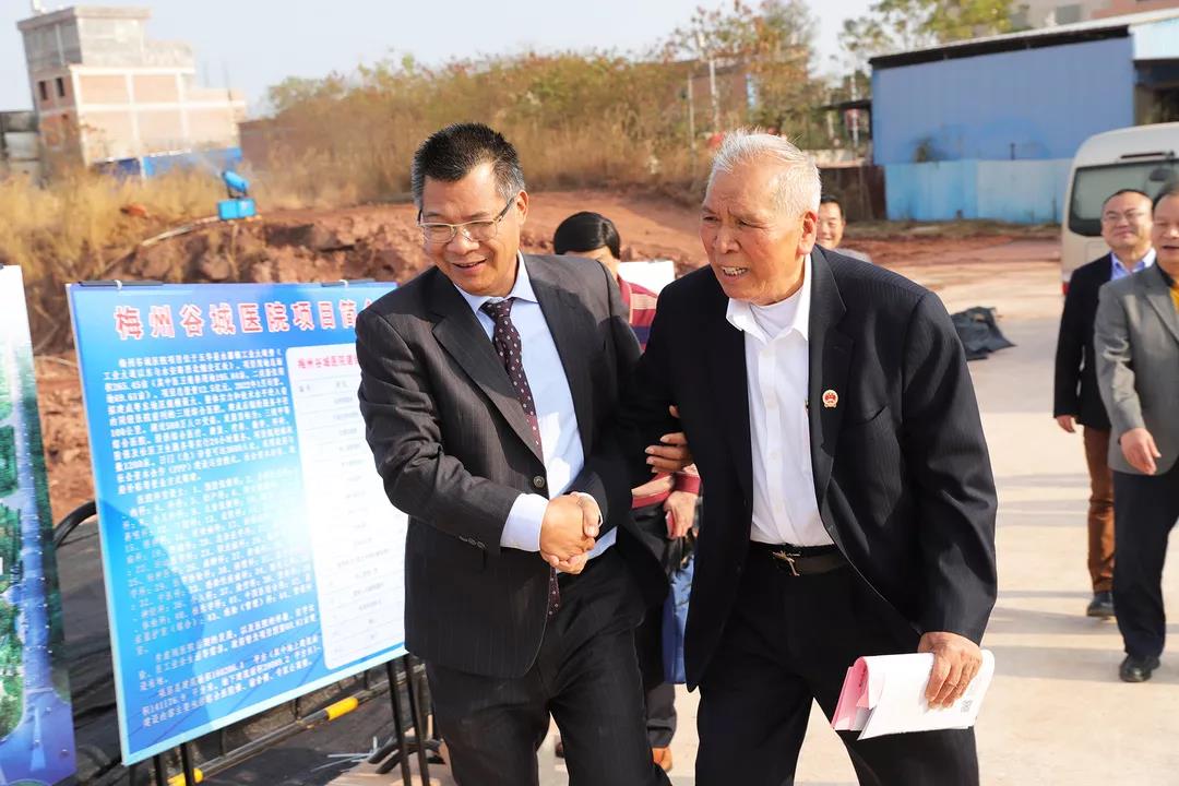 12月22日,廣東省老促會會長陳開枝、廣東省老促會常務(wù)副會長林華景、廣東省老促會副會長兼秘書長姚澤源、廣東省老促會副會長胡朝杰、梅州市老促會會長羅德宜、五華縣委常委劉敬東、衛(wèi)生健康局局長劉旭倫、五華縣老促會會長鐘賜傳等一行蒞臨梅州谷城醫(yī)院項目現(xiàn)場調(diào)研。谷城集團董事長賴友谷、總裁肖大志、建設(shè)項目總經(jīng)理陳立寶等陪同調(diào)研。