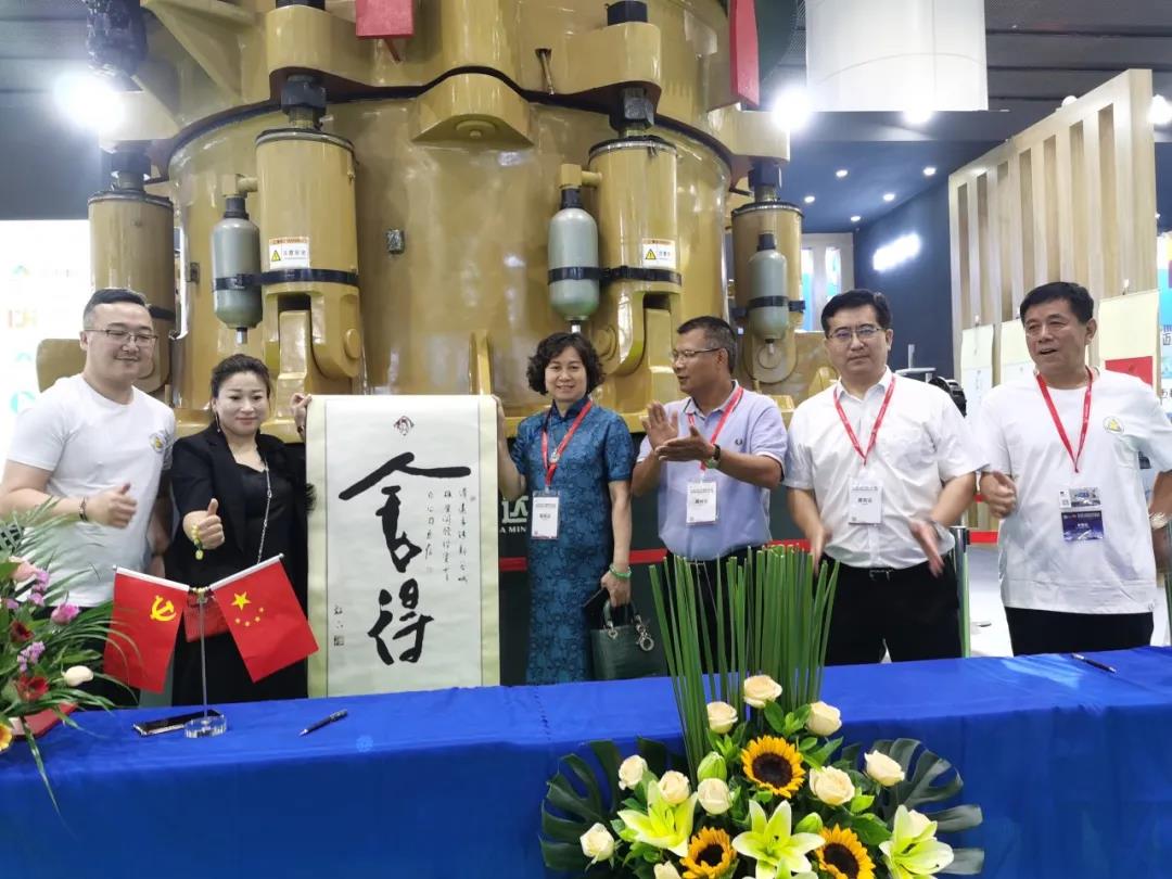 開幕式結束后,谷城集團董事長賴友谷在廣東省機制砂專業委員會理事長、谷城集團執行董事總裁肖大志的陪同下,進行了巡館活動,觀看展廳工程器械裝備,到展位上與展商們進行交談。并于展會現場與國內重型破碎設備企業沈陽順達重礦機械制造有限公司、三一重機有限公司、和合集團等簽署戰略合作協議。為巡館活動書寫了濃墨重彩的一筆。