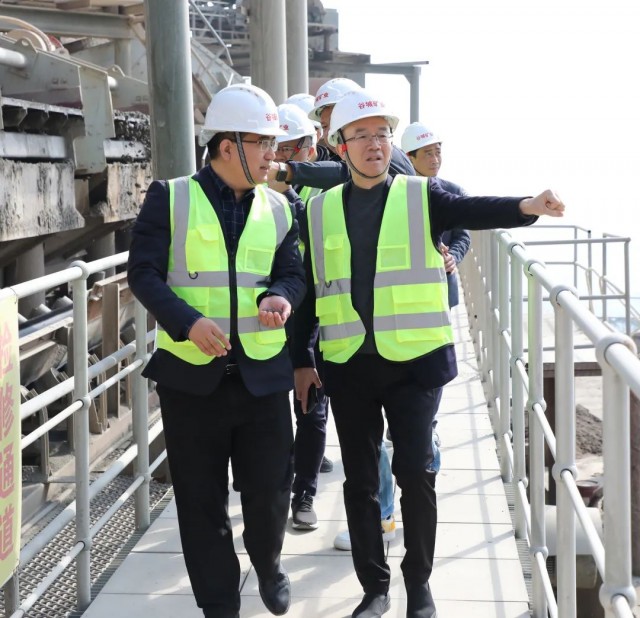 在肖大志總裁的帶領下,吳執政書記一行實地察看了礦業生產情況,參觀礦口,制砂樓,中控室等。肖大志總裁介紹了谷城礦業相關情況,并與吳執政書記就礦山管理等進行深入研討。