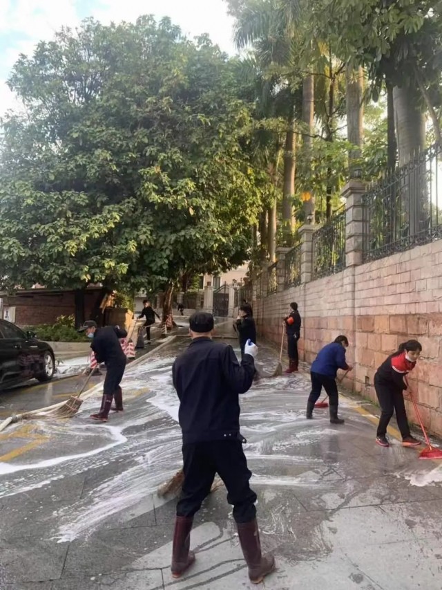 晨曦初現(xiàn),在谷興物業(yè)馮國輝總經(jīng)理的帶領(lǐng)下,全體員工“全副武裝”出動(dòng),積極加入衛(wèi)生大清掃隊(duì)列。擼起袖子勁頭足,開動(dòng)消防大水管,拿起大掃把,備足消毒液,對(duì)新鋪設(shè)的地板、商鋪鐵閘門、綠化帶衛(wèi)生死角等隱藏的臟亂進(jìn)行清理沖洗。重點(diǎn)對(duì)廣場(chǎng)內(nèi)的垃圾中轉(zhuǎn)站、樓梯間隔、樓層天面、倉庫等區(qū)域進(jìn)行全方位集中清理。對(duì)大件垃圾進(jìn)行集中處理,確保不留衛(wèi)生死角,并進(jìn)行了徹底的消毒。
