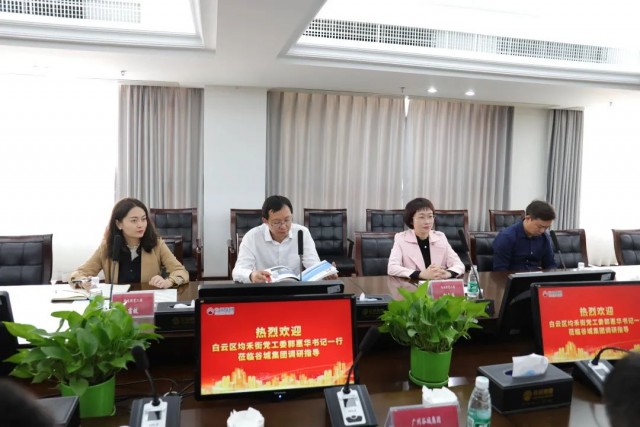 均禾街黨工委書記郭惠華,黨工委副書記、街道辦事處主任唐曉亮,黨工委委員、街道辦事處副主任雷皎,均禾街道辦事處經濟科負責人陳慶權蒞臨谷城集團調研指導。谷城集團執行董事總裁肖大志,運營管理中心副總監何志昉,法務與品牌中心副總監沈浩源,辦公室副主任羅梅英,法律顧問廣東謹然律師事務所盧建雄律師陪同調研。