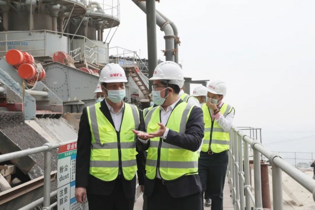 在肖大志總裁的陪同下,羅偉民主任一行到現場詳細查看了谷城礦業制砂樓、中控室等,他對谷城礦業機制砂生產、國家級綠色礦山建設等方面做出的成績給予了高度評價。