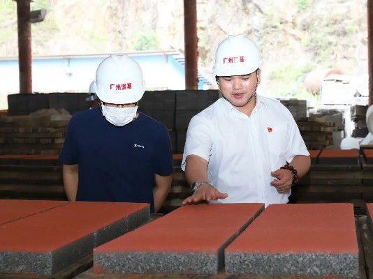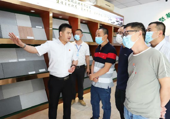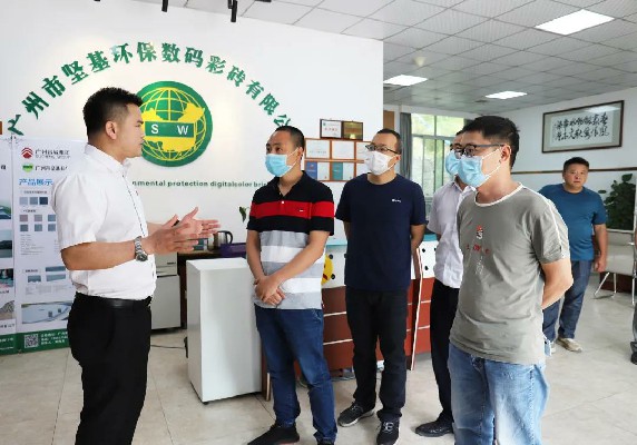 ▲堅(jiān)基公司總經(jīng)理黃海亮陪同參觀,并詳細(xì)介紹了堅(jiān)基公司的發(fā)展情況、戰(zhàn)略規(guī)劃、堅(jiān)基彩磚的生產(chǎn)工藝、產(chǎn)品類型等。
