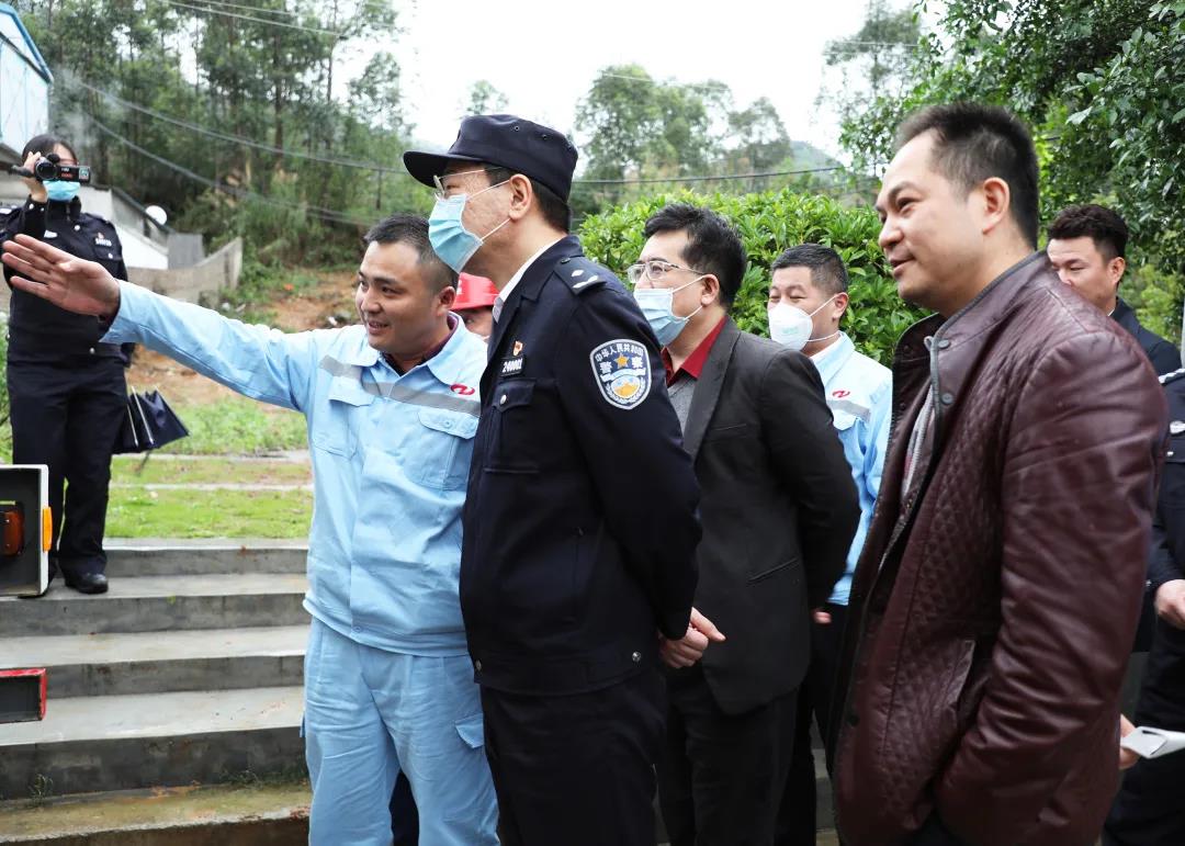 4月6日,清遠(yuǎn)市政府黨組成員、副市長,市委政法委第一副書記,市公安局黨委書記、局長、督察長畢洪波等領(lǐng)導(dǎo)蒞臨谷城礦業(yè)調(diào)研指導(dǎo)。谷城集團(tuán)執(zhí)行董事總裁肖大志、副總裁賴志興、張滿宗、副總裁兼谷城礦業(yè)總經(jīng)理賴志長、爆破合作單位宏大爆破公司總經(jīng)理謝守冬等陪同,并對(duì)領(lǐng)導(dǎo)一行的到訪表示熱烈歡迎,參加調(diào)研的還有清遠(yuǎn)市公安局治安巡警支隊(duì)副支隊(duì)長綦尤強(qiáng)、副區(qū)長、清新公安分局局長葉軍強(qiáng)等。