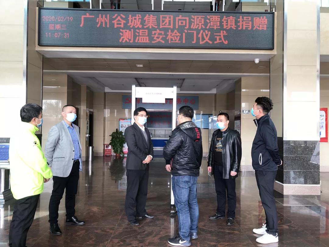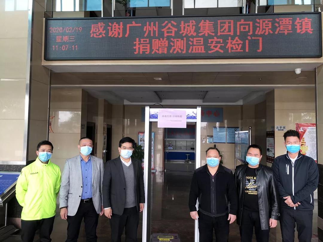2月19日,廣州谷城集團向清遠市清城區源潭鎮政府捐贈一個價值6.8萬的紅外線測溫安檢門,3000個口罩。