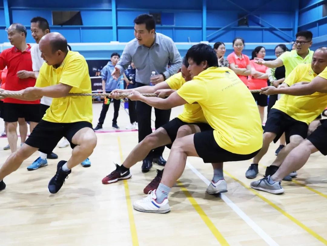 當(dāng)團(tuán)隊(duì)拔河比賽開始時(shí),整場比賽的氛圍達(dá)到了高潮,場上隊(duì)員鼓足干勁、場外觀眾搖旗吶喊。