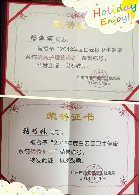 谷城集團下屬嘉禾益民醫院外科護士長楊淑麗、急診科護士張巧林分別榮獲“白云區衛生健康系統優秀護理管理者”和“白云區衛生健康系統優秀護士”稱號。