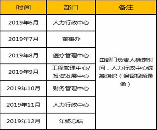 喏,下面就有各部門分享會的時間安排